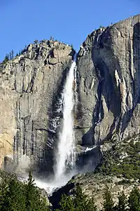 The park's waterfalls pose another potential hazard. Do not attempt to get close to the waterfalls, especially in the spring. This includes swimming above the waterfalls at a distance of less than 1 mile (about 1.6 km). The force of the water will easily sweep a person off their feet and over the falls, even if it appears to be flowing slowly. Being swept over any of Yosemite's waterfalls is invariably fatal. Even if you see other people bathing in the pools above certain water falls––and you will––do not get into the water.