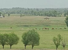 Yulin is the northernmost prefecture-level city of Shaanxi, and borders Ordos City (Inner Mongolia) to the north, Xinzhou and Lüliang (Shanxi) to the east, Yan'an to the south, and Wuzhong (Ningxia) to the west. To the north and northwest of the city lies the Ordos Desert, though the countryside is very green due to the many small shrubs which have been planted to slow the process of desertification. The city is based in a valley which extends north–south, which rises to a large vantage point to the north east, from which there are views of the west and northwest.